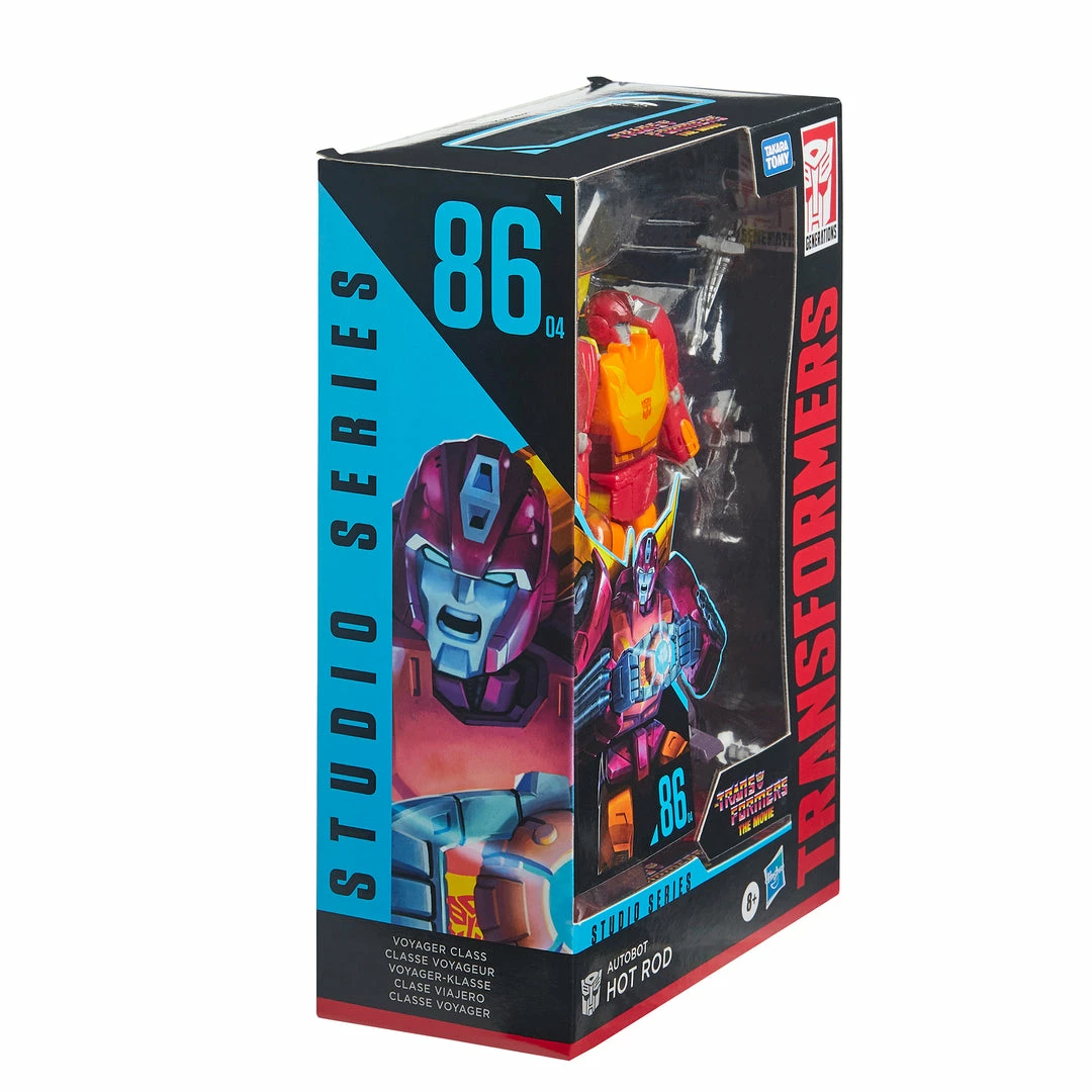 This Studio Series 86 Voyager Class The Transformers: The Movie-inspired Autobot Hot Rod figure converts from robot to sports car mode in 29 steps. Remove backdrop to showcase Hot Rod in the The Depths of Unicron scene. In the The Depths of Unicron scene from The Transformers: The Movie, Hot Rod embraces his destiny, becoming Rodimus Prime and defeating Unicron. Pose the figure out with the included Matrix of Leadership and attach the energy effect to recreate this classic movie moment.