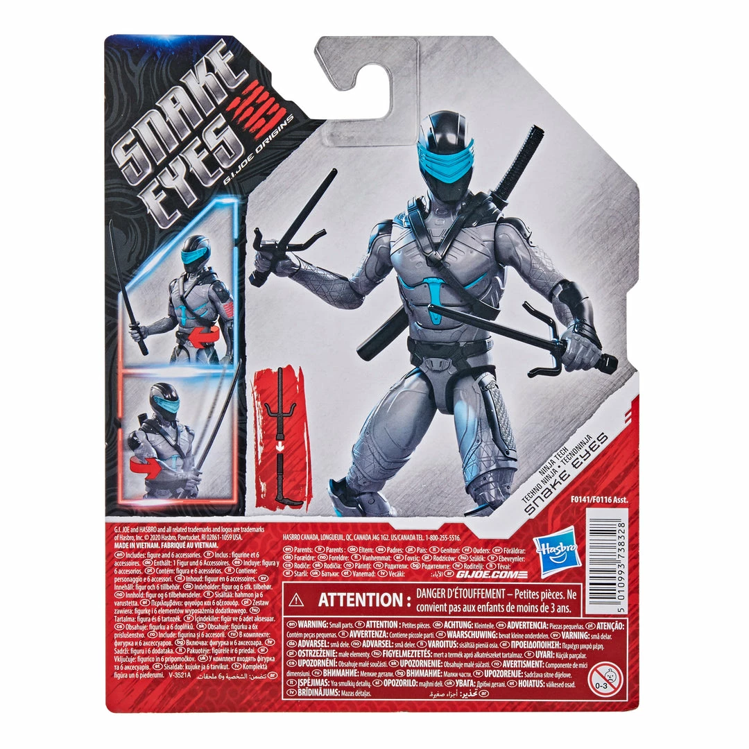Kids can imagine unsheathing their katanas and ninja-kicking into action with Snake Eyes! Enter a world of cutting-edge technology, traditional Ninjutsu weapons, breathtaking martial arts, and Next-Gen Ninjas with the Snake Eyes: G.I. Joe Origins Ninja Tech Snake Eyes action figure! This Ninja Tech Snake Eyes toy comes ready for action, with multiple points of articulation for poseability and character-inspired accessories!