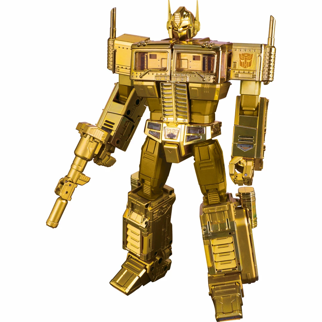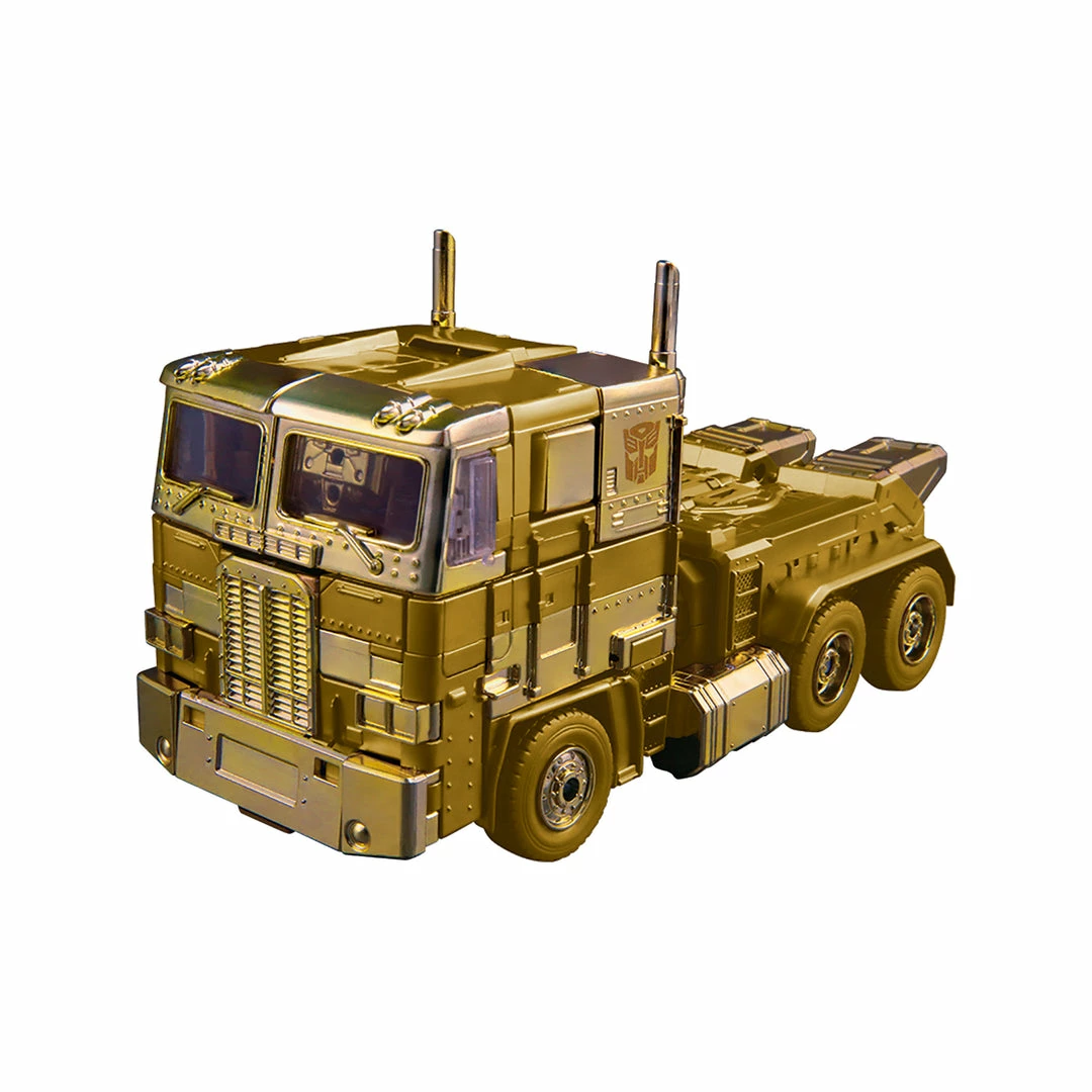 The Takara Tomy Transformers Golden Lagoon GL-01 Convoy (Optimus Prime) figure was imported directly from Japan in the original packaging with Japanese-language instructions, featuring authentic Takara Tomy design and deco. Special edition Golden Lagoon figures (each sold separately, subject to availability) come in a special collector box, incorporating a freestyle character art concept and gold leaf colors and textures.