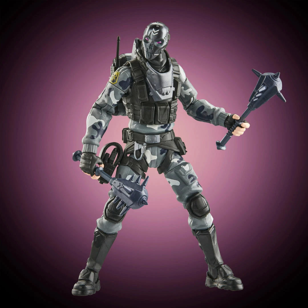 Metal MouthΒ drops off the Battle Bus and glides into the Victory Royale Series! This 6-inch action figure shows the popular character outfit with game-level deco and details. Comes with 2 Spiked Mace Harvesting Tools, Catalyst Back Bling, and weapon accessories. Pose out theΒ Metal MouthΒ figure in an epic battle stance or bust a move in a dance emote with more than 20 points of articulation!