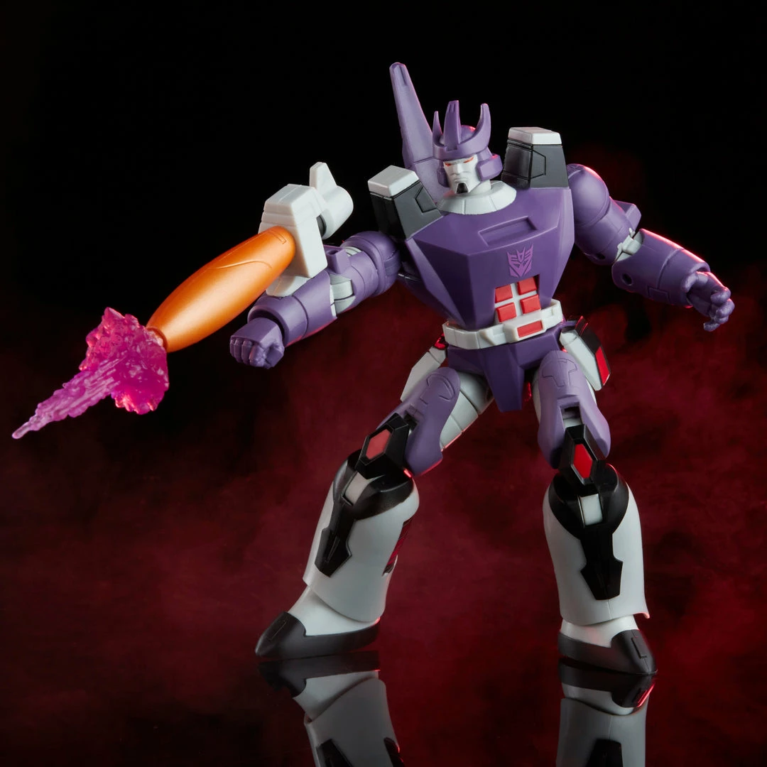 Highly poseable with 70 deco ops, this Galvatron R.E.D. figure was designed to bring collectors our most screen-accurate version of the character to display on their shelf. The ruthless Herald of Unicron is inspired by the character’s appearance in the 1986 animated film, The Transformers: The Movie and features 24 points of articulation. Includes 4 alt hands, 2 blast effects, and Matrix of Leadership accessories, plus clear grid field backdrop.