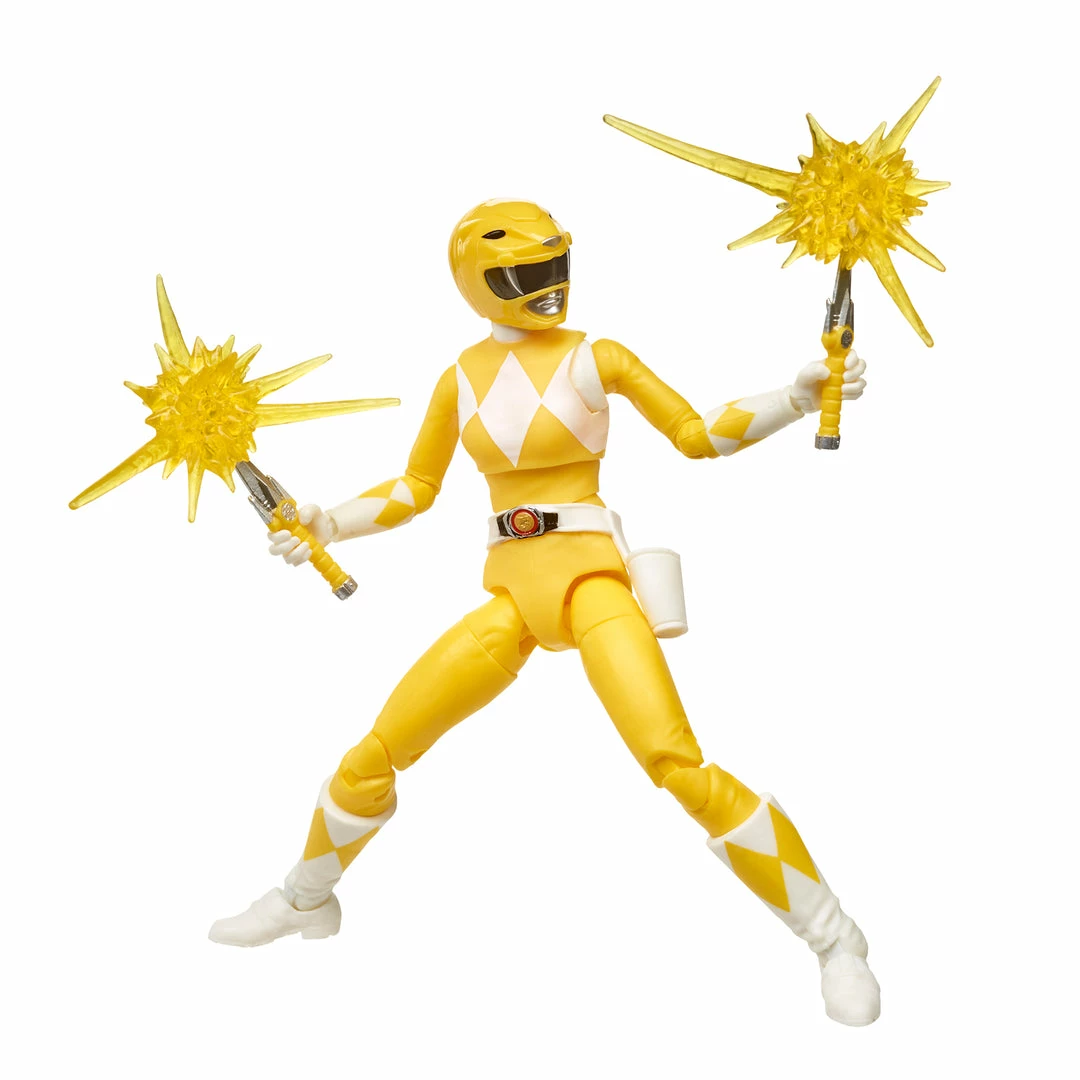 - This Mighty Morphin Yellow Ranger toy includes multiple character-inspired accessories, including the Yellow Rangerβs Power Daggers