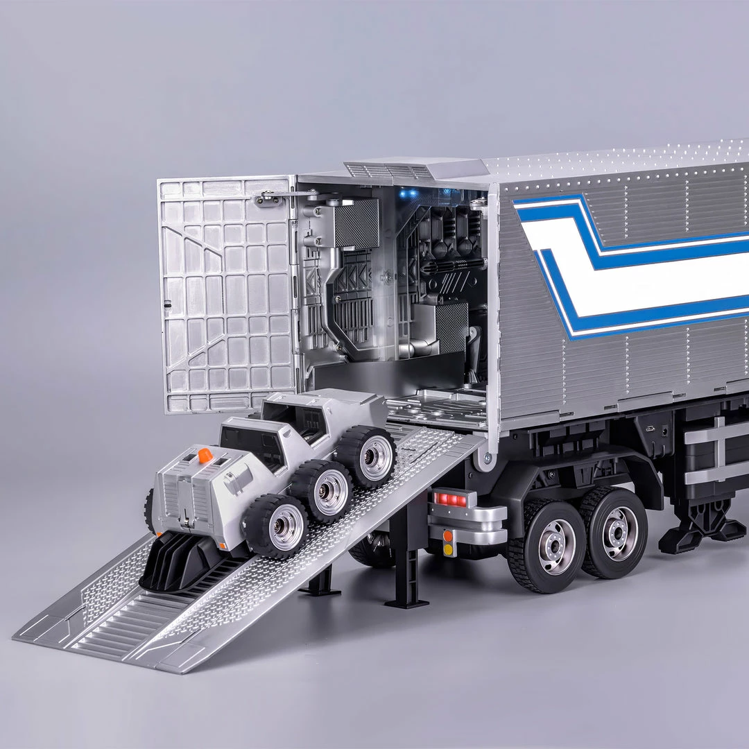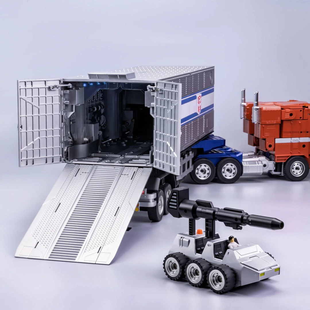 - Robosen Flagship Transformers Optimus Prime Auto-Converting Trailer, Roller vehicle, Spike action figure, and protective foam storage case