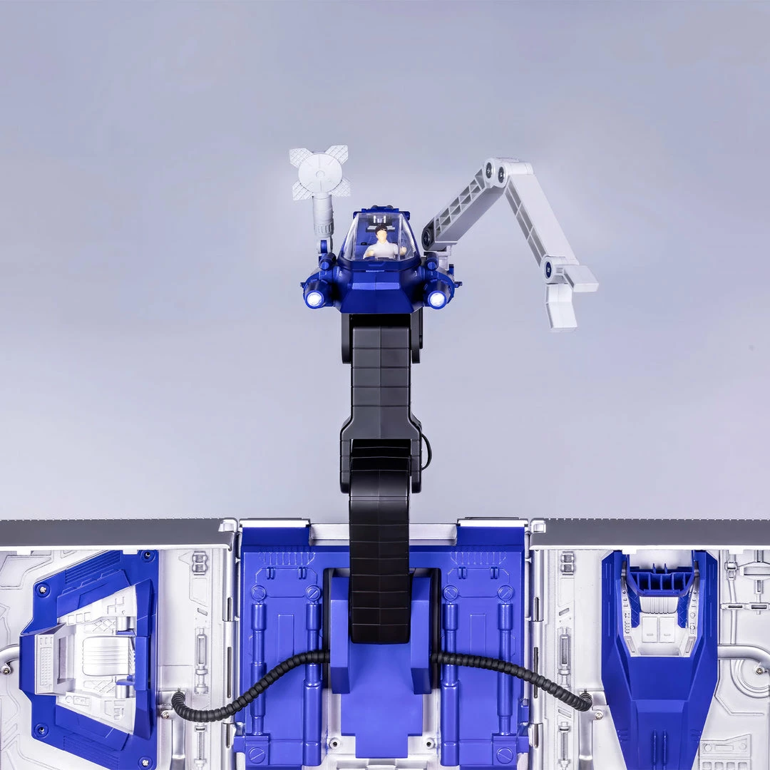 Modeled after the original G1 design and measuring at an impressive 3 ft (91.44 cm) in height (when fully extended with combat deck grapple-arm), the Trailer includes an illuminated combat deck, Roller & Spike figure, incredible details and customized actions. It auto-converts into maintenance and battle mode by folding open, pivoting upwards, and exposing its massive fire power from within the combat deck. Stationed inside, Roller awaits your command to explore and engage the enemy, all via app control, along with human sidekick Spike, who is ready to jump into action or enjoy the ride!