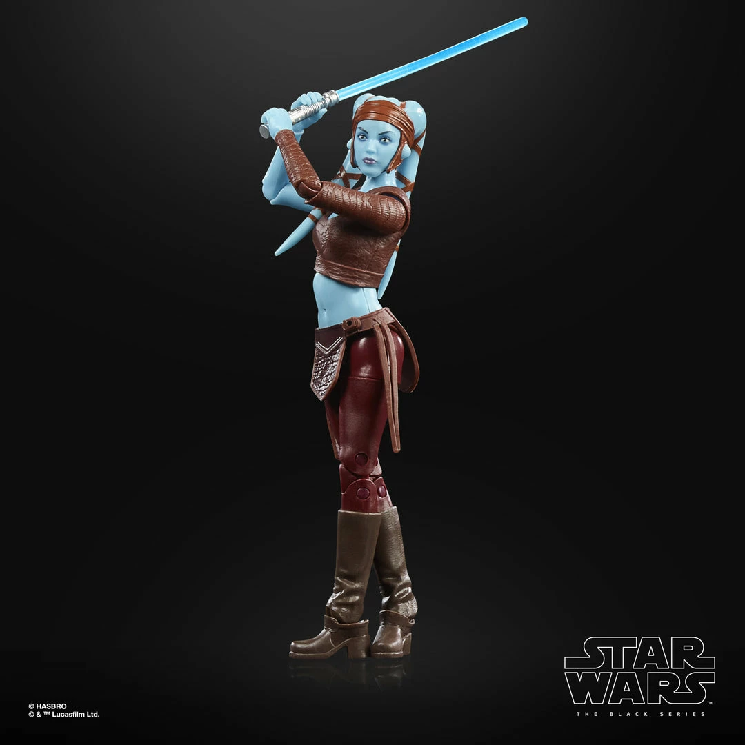 The 6-inch-scale Black Series figure is detailed to look like the Aayla Secura character from Attack of the Clones, featuring premium detail and multiple points of articulation.