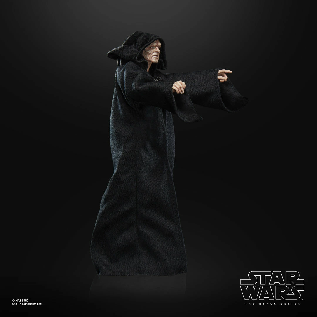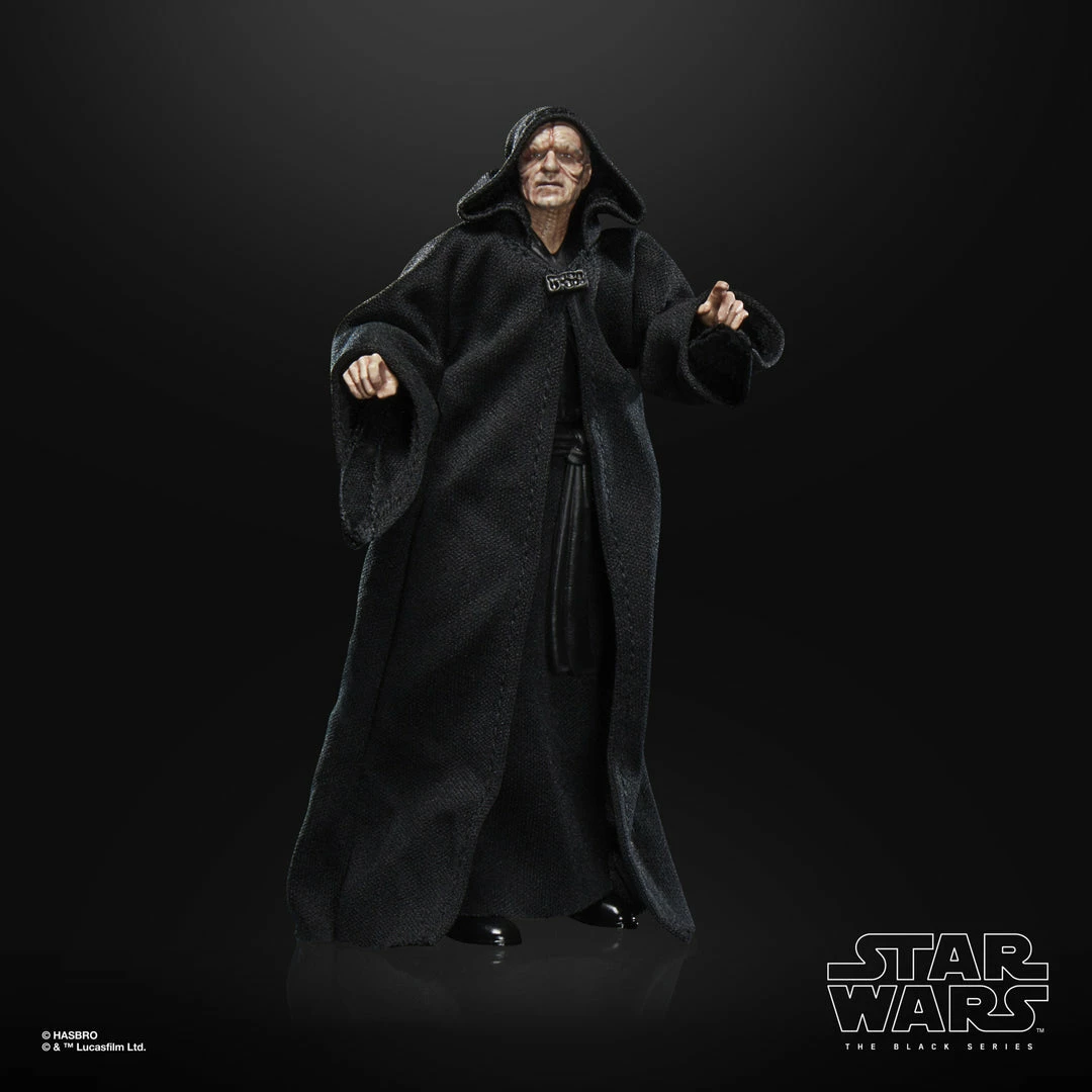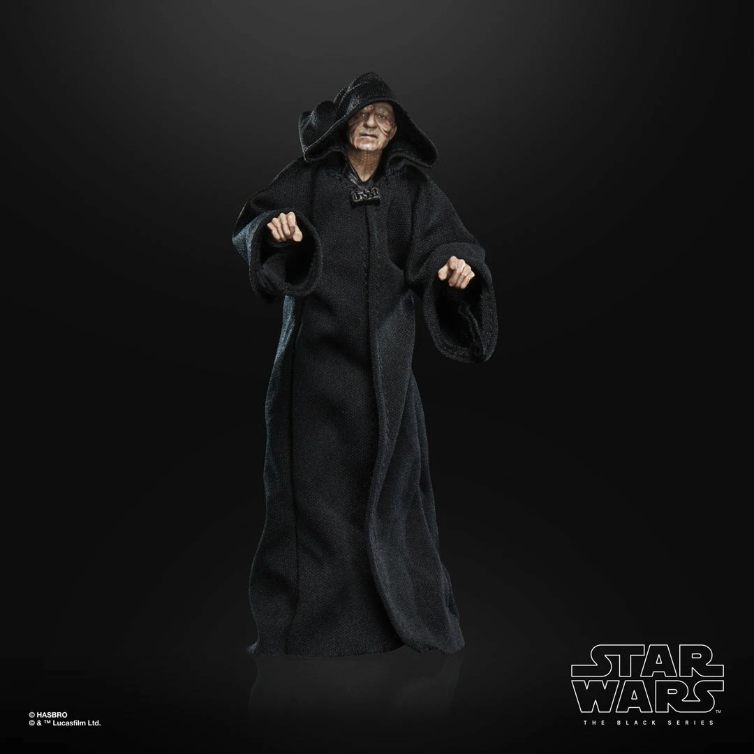 The 6-inch-scale Black Series figure is detailed to look like the Emperor Palpatine character from Star Wars: Return of the Jedi, featuring premium detail and multiple points of articulation.