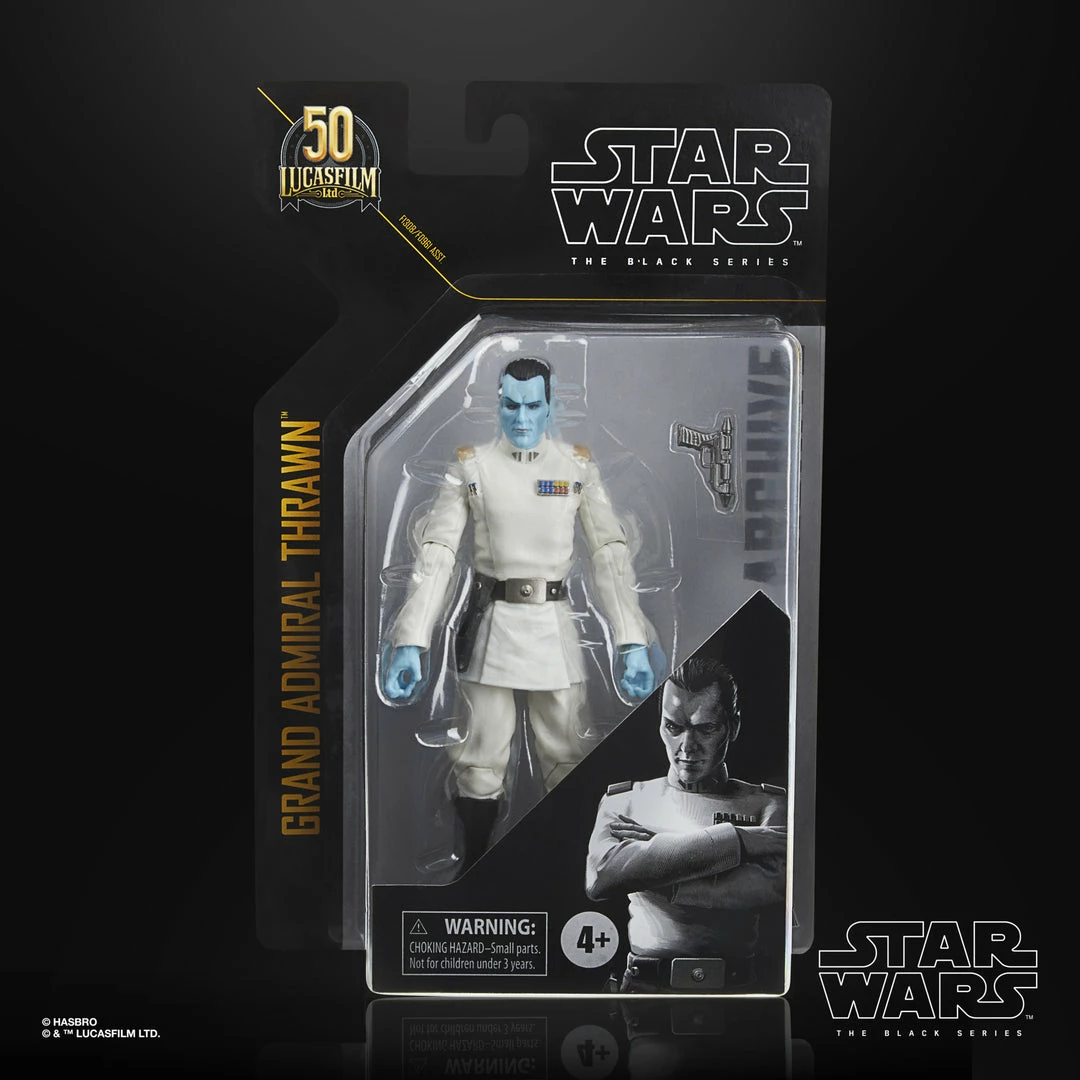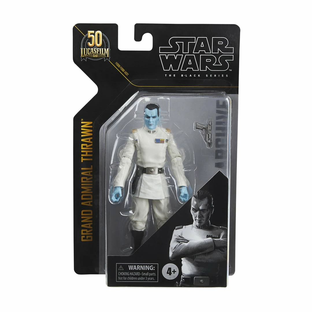 The 6-inch-scale Black Series figure is detailed to look like Grand Admiral Thrawn from the Star Wars Rebels animated series, featuring premium detail and multiple points of articulation.