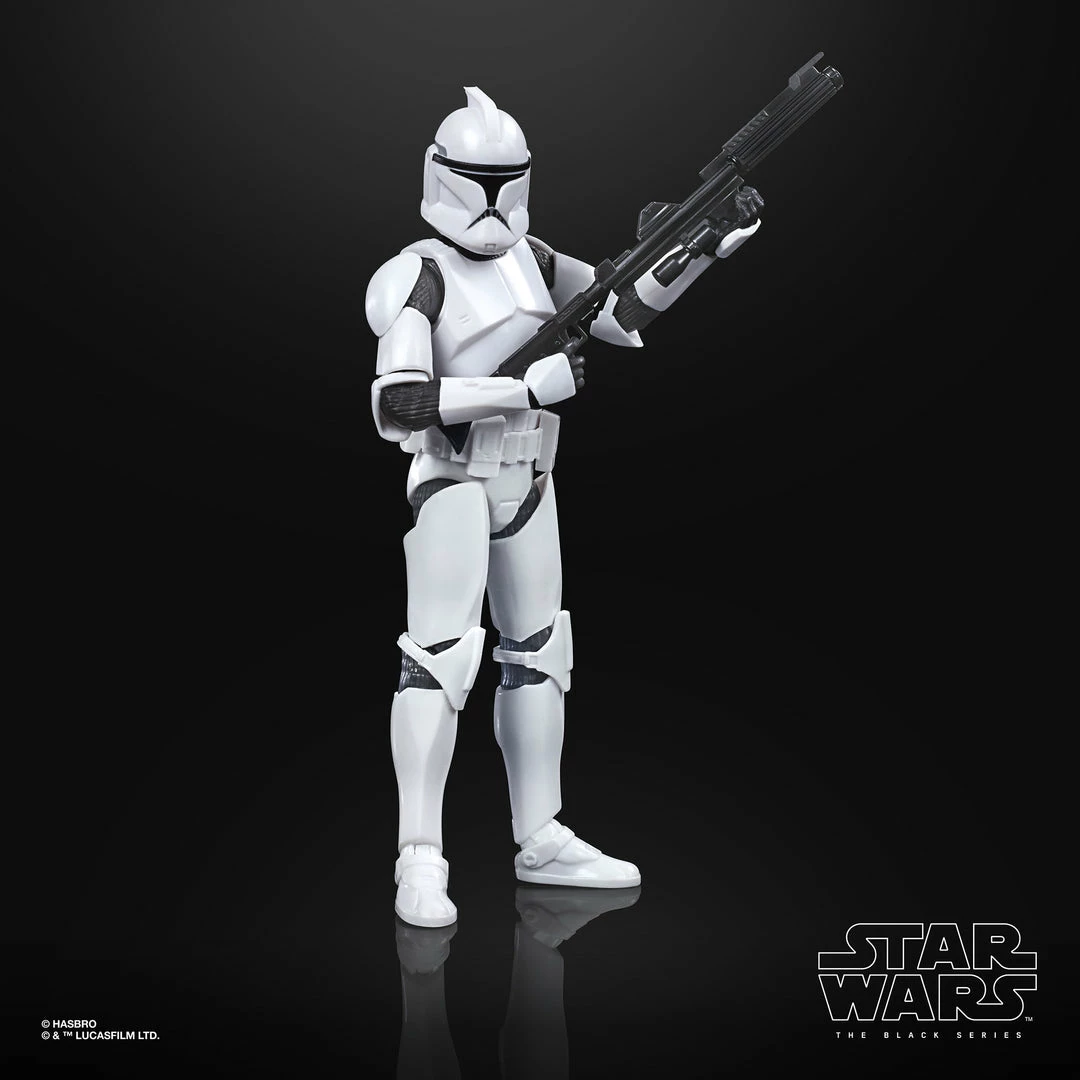 The 6-inch scale Black Series figure is detailed to look like the Phase I Clone Trooper character from Star Wars: The Clone Wars, featuring premium detail and multiple points of articulation.