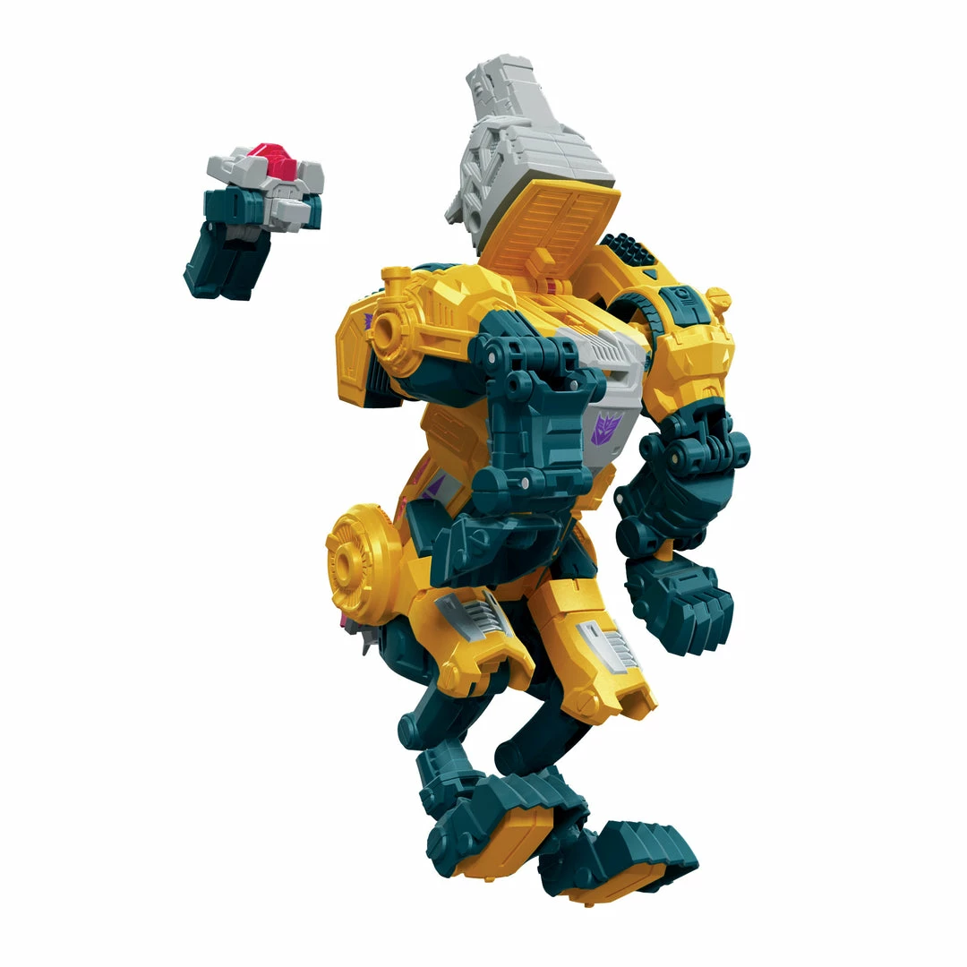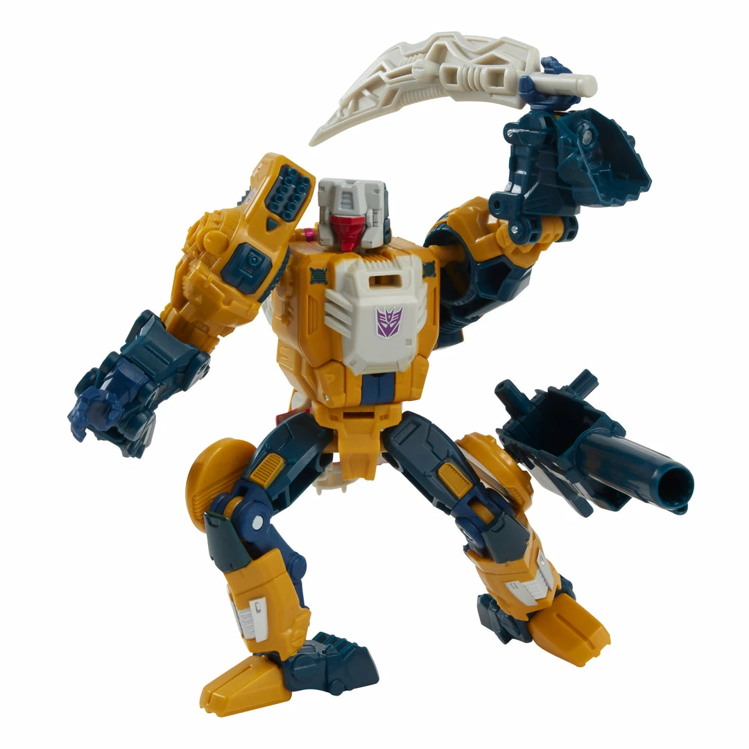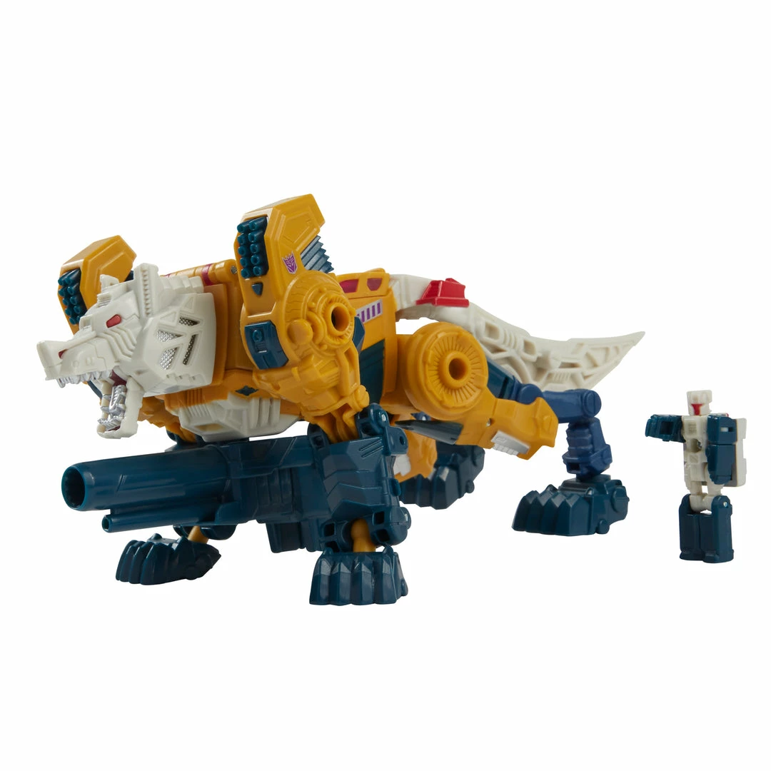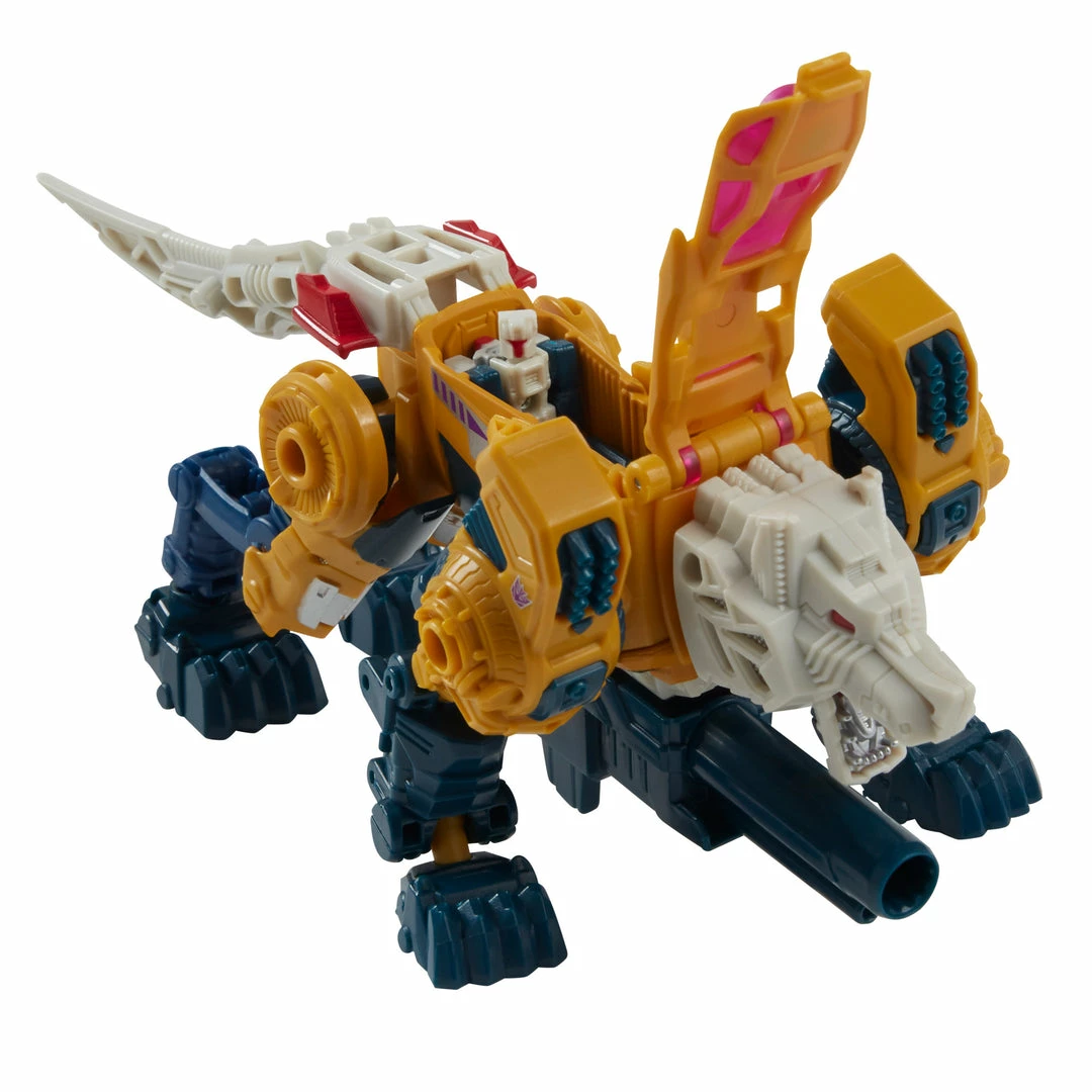 This Weirdwolf figure converts from robot to wolf mode in 17 steps and features an articulated wolf jaw. Weirdwolf figure’s head converts into Headmaster Trainer Monxo figure. Comes with blaster and sword accessories.
