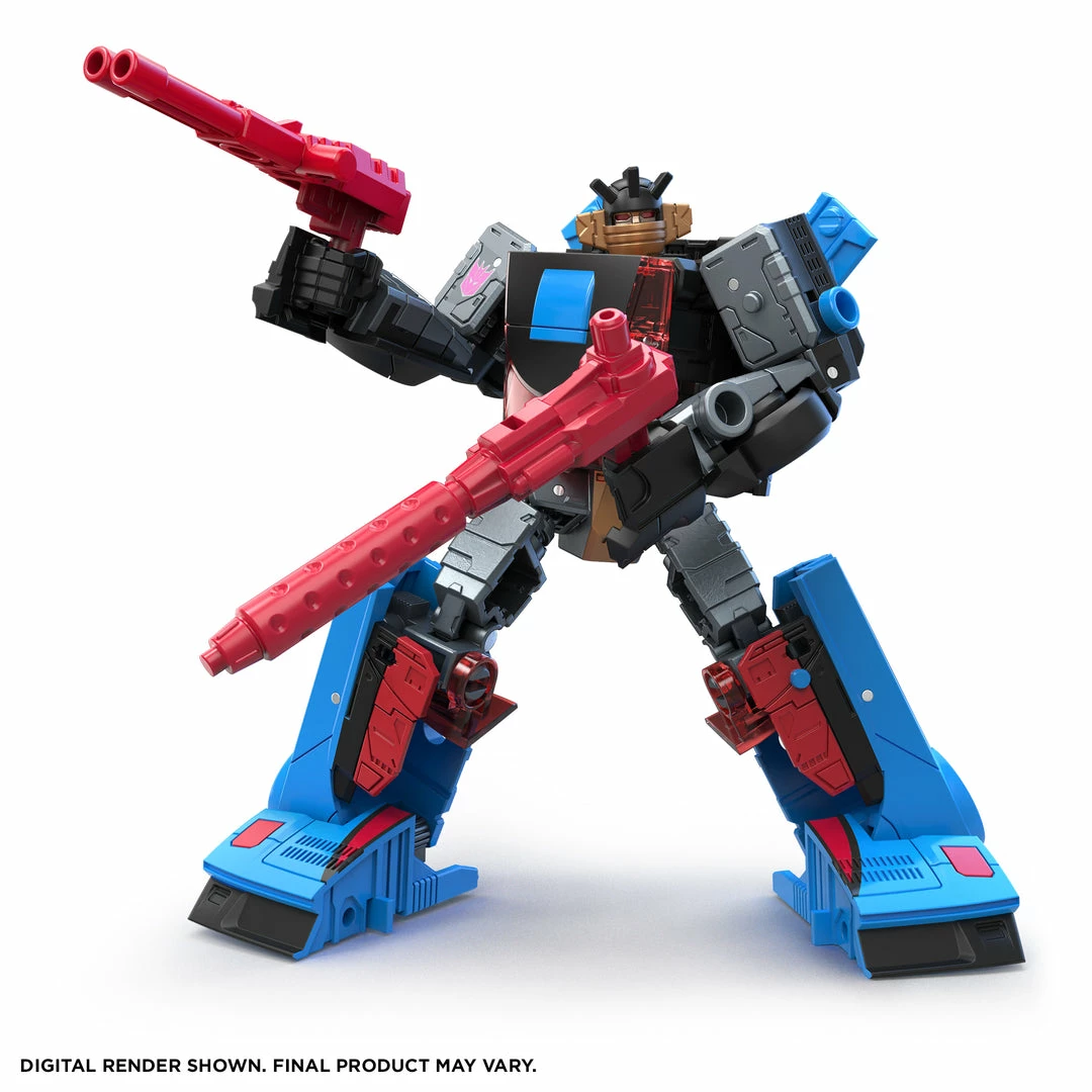- ALTERNATE UNIVERSE-INSPIRED DECO: This Decepticon Slicer figure’s deco is inspired by the Shattered Glass universe, complete with a red Decepticon logo. Comes with 2 combinable blaster accessories