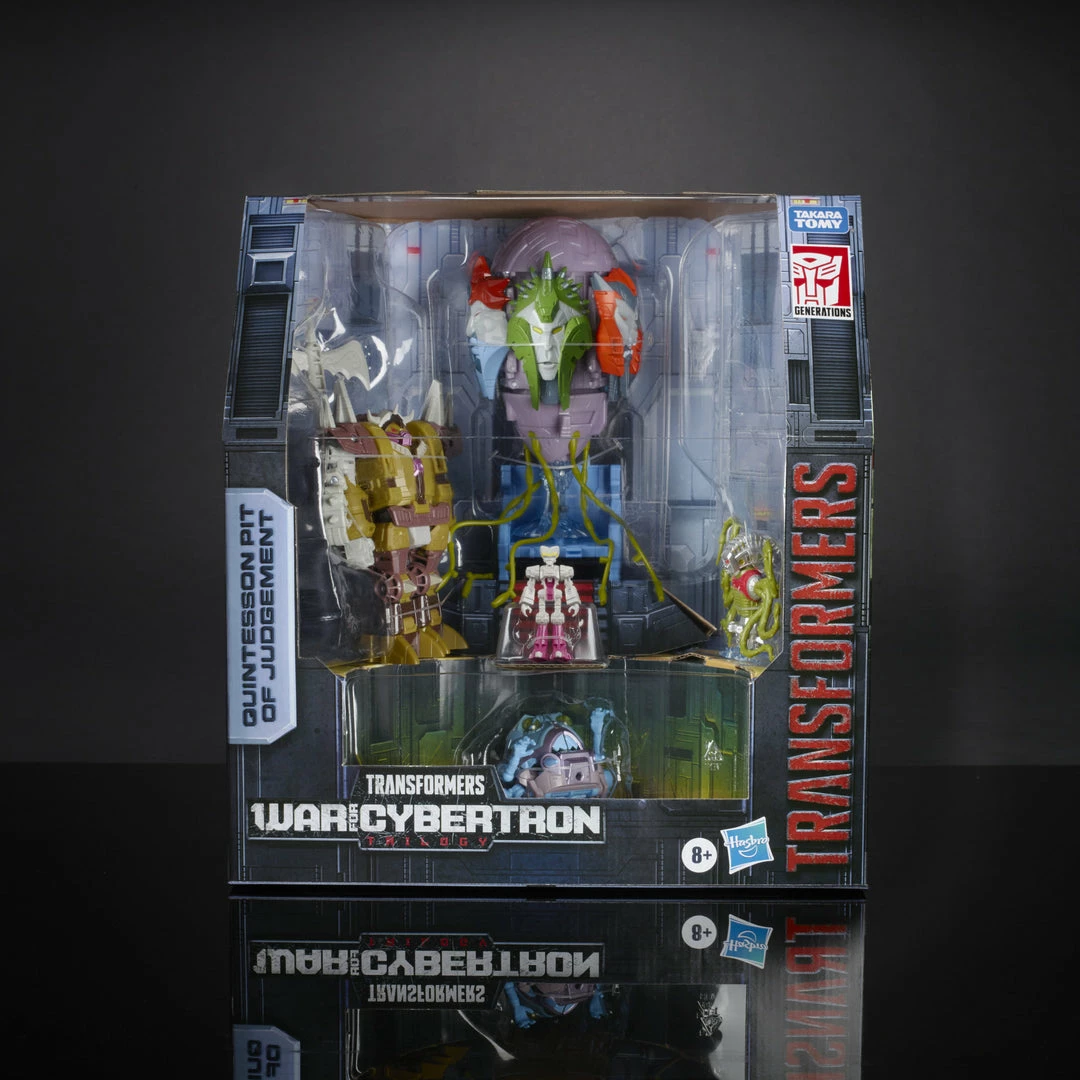 Spare me this mockery of justice! From the classic 1986 movie, The Transformers: The Movie, this 5-pack is inspired by the iconic scene where the Quintesson Judge decides the fate of Kranix. If youβre guilty, you will be fed to the Sharkticons. If youβre innocent, you will be fed to the Sharkticons. Experience Quintesson justice with this epic pack!