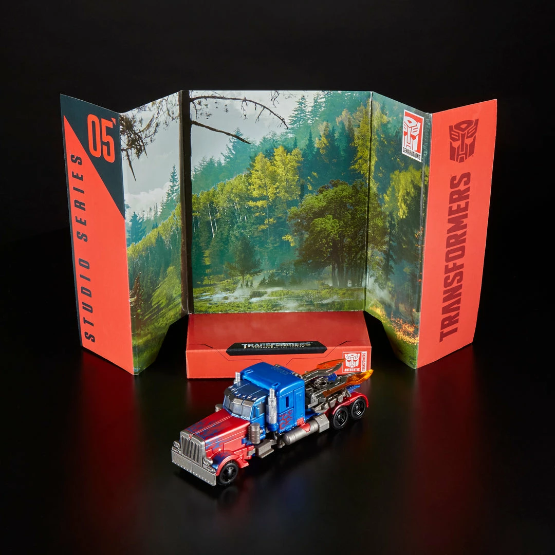 This Studio Series 05 Voyager Class Movie 2 Optimus Prime figure converts between robot and truck modes in 35 steps and comes with 2 weapon accessories. Remove the backdrop from pack to showcase the legendary Autobot leader in the Forest Fight scene.
