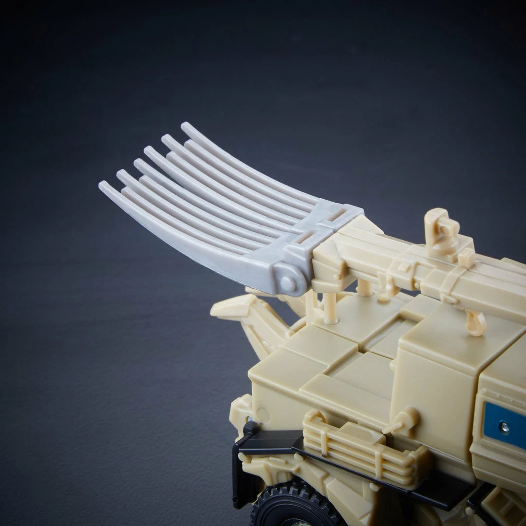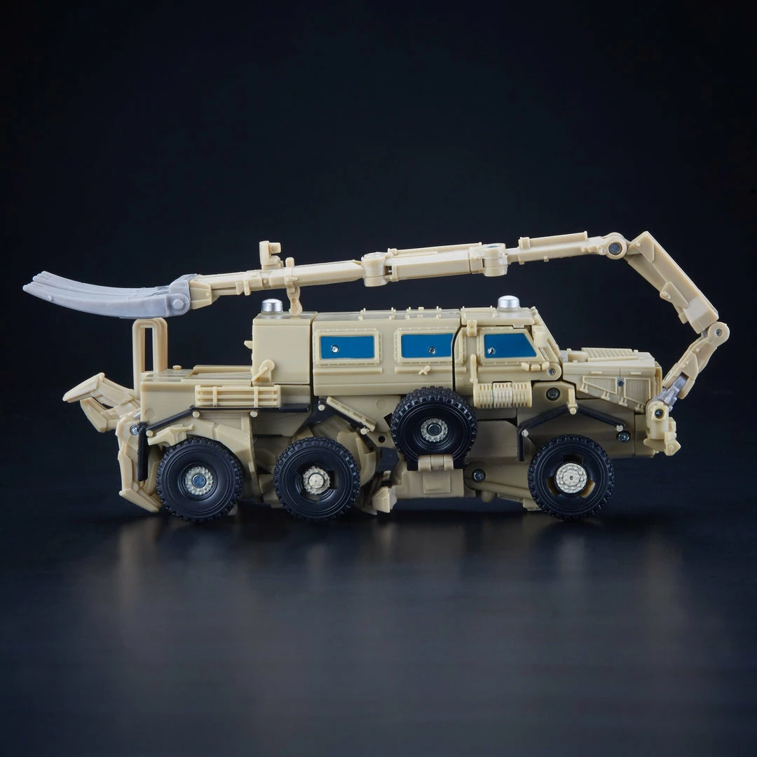 This Studio Series 33 Voyager Class Movie 1 Bonecrusher figure converts from robot to General Dynamics Buffalo MPCV mode in 33 steps. Remove backdrop to showcase Bonecrusher in the Highway Showdown scene. Figure features vivid, movie-inspired deco and a detailed claw attached to the figure that’s modeled after the one Bonecrusher uses to thrash at his enemies in the film.