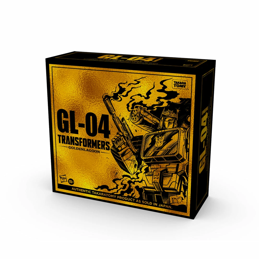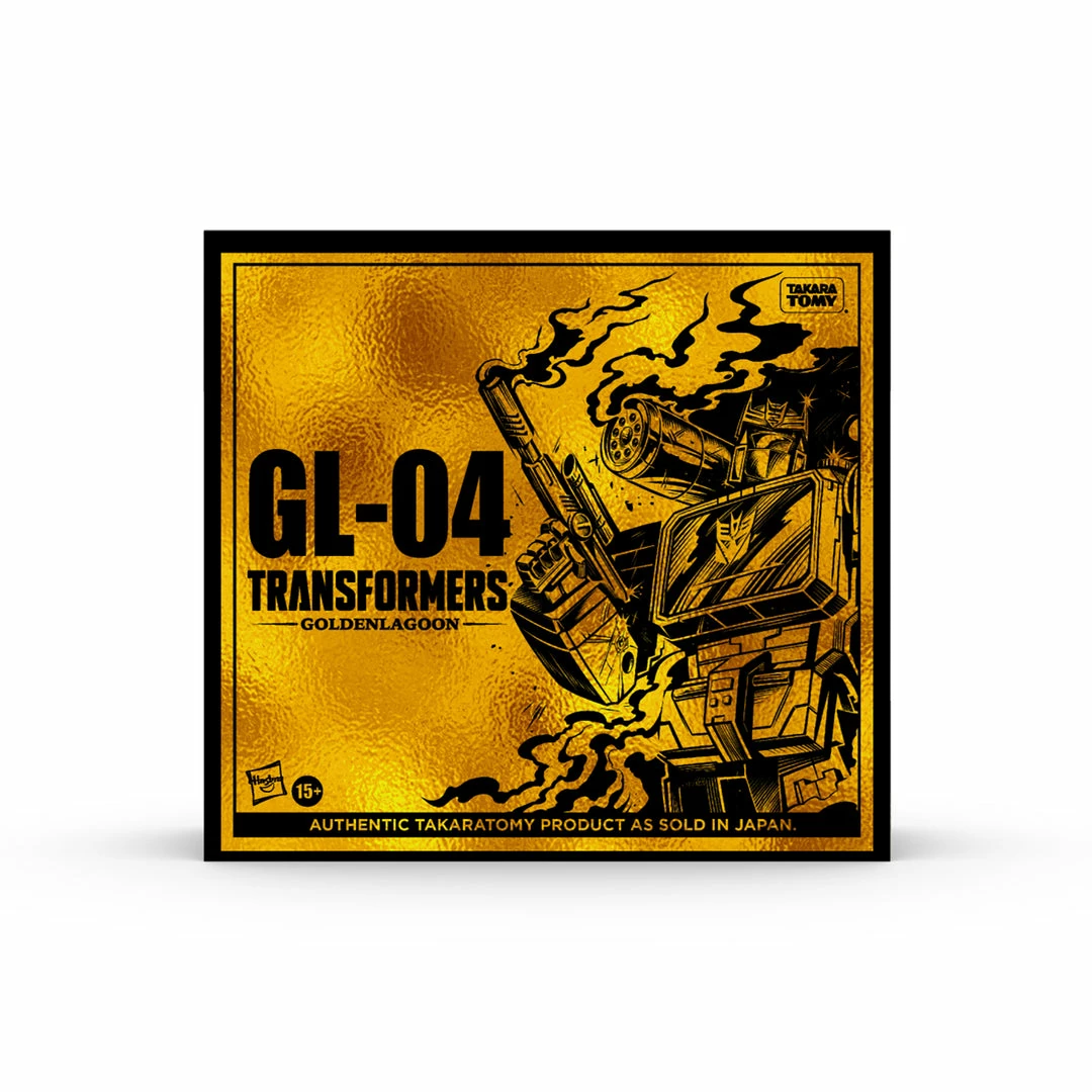 The Takara Tomy Transformers Golden Lagoon GL-04 Soundwave figure was imported directly from Japan in the original packaging with Japanese-language instructions, featuring authentic Takara Tomy design and deco. Special edition Golden Lagoon figures (each sold separately, subject to availability) come in a special collector box, incorporating a freestyle character art concept and gold leaf colors and textures.