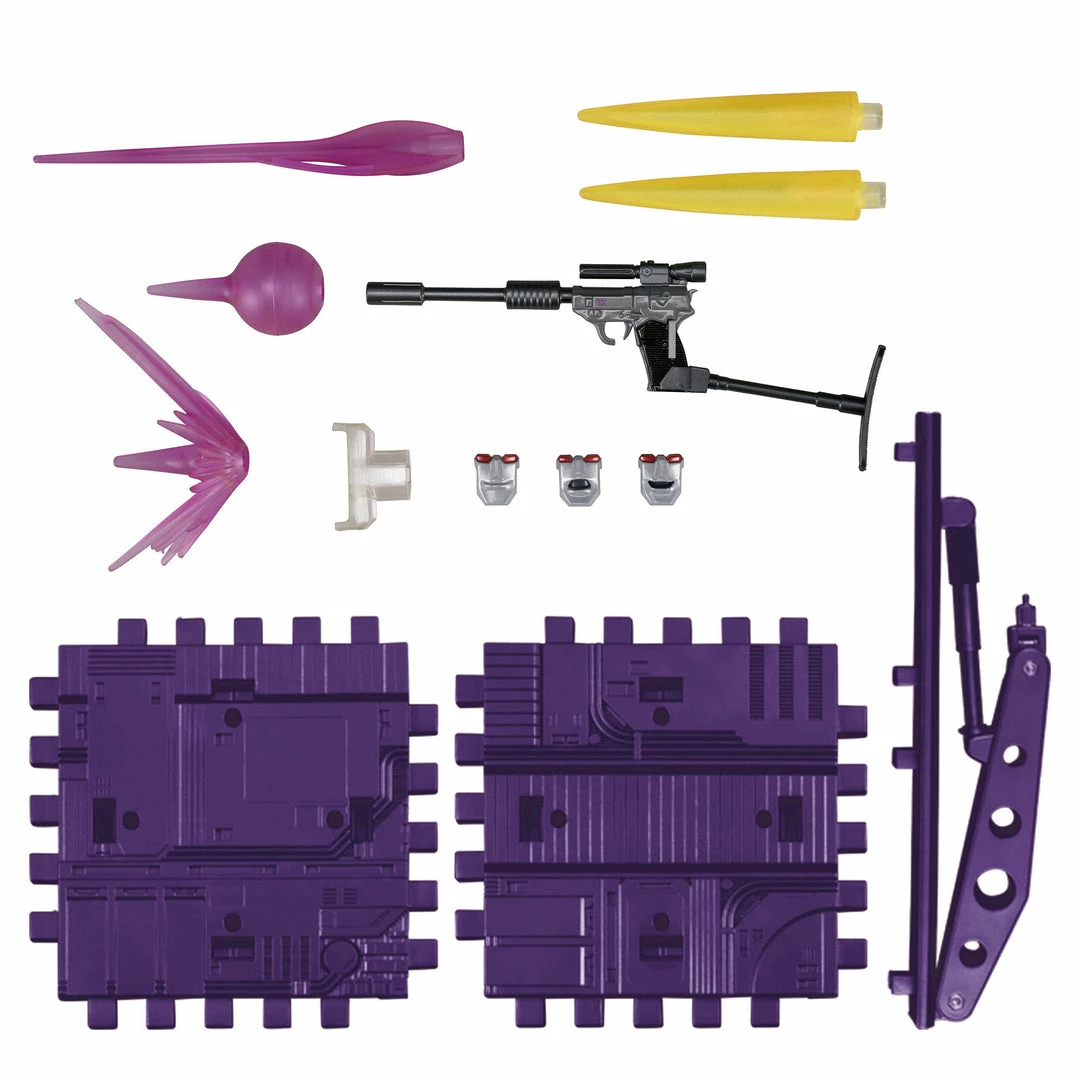 - Detailed deco and accessories, including 2 Null Ray accessories, 5 energy blasts that fit on the ends of weapon accessories and attach to the figure’s feet in robot mode, and 3 alternate faces (surprise, smile, sneer)